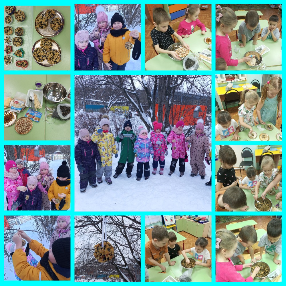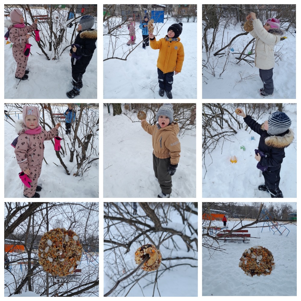 15 января, в рамках Всероссийской акции, посвящённой Дню зимующих птиц, воспитанники группы развешивали на участке детского сада экологические кормушки, которые они изготовили со своими родителями под чутким руководством педагогов группы.